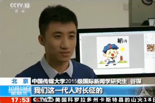 2016年9月,谷琛同学及学部TVS新媒体工作坊创作团队在副学部长王晓红教授的指导下,设计制作了微信表情包《长征路上小红军》,累计发送量超过1000万次。人民网评论说“这样的方式可以让大家记住长征,触摸长征,更能理解长征精神”。中央网信办也高度评价:“这是社交媒体环境下重大主题的传播方式创新。”