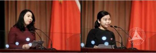 获奖教师代表经管学部刘钰、获奖学生代表2015 级传播学专业硕士研究生吴倩在大会上发表获奖感言。分享了他们在工作或学习中的点滴经历,感恩学校为他们创造了良好的环境和氛围。并表示在新的一年继续努力进取,不断提升自己。
