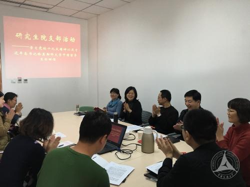 (通讯员 郑丹琪)1月16日,为进一步学习贯彻落实党的十九大精神,研究生院支部召开专题生活会,组织学习了党的十九大精神以及习近平总书记给莫斯科大学中国留学生的回信,校党委副书记姜绪范、研工部部长史萍、校督导办主任田智辉等支部党员参加了政治学习,研究生院院长张鸿声(民盟),副院长舒笑梅(无党派)作为党外人士出席了本次活动。