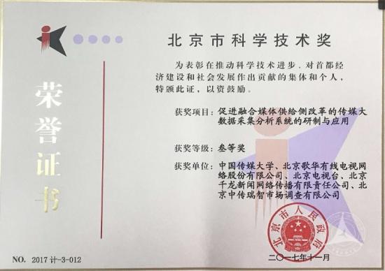 (通讯员:罗莉梅)2018年2月5日上午,北京市委、市政府在北京会议中心隆重召开2017年度北京市科学技术奖励大会。由我校理工学部牵头研制的《促进融合媒体供给侧改革的传媒大数据采集分析系统的研制与应用》喜获三等奖,实现了十二五以来我校理工类省部级政府科学技术奖项零的突破。