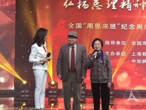 (通讯员 张诗雨 丁文婧)3月4日下午,以“弘扬总理精神,共筑时代梦想”为主题的全国周恩来班纪念总理诞辰120周年大型文艺汇演,在上海教育电视台演播厅隆重开幕。该活动由中共中央文献研究室周恩来思想生平研究会的指导,上海教育电视台与中加枫华国际学校联合主办,全国周恩来班网协办。周恩来总理侄子周尔鎏老先生及夫人作为嘉宾出席了节目。