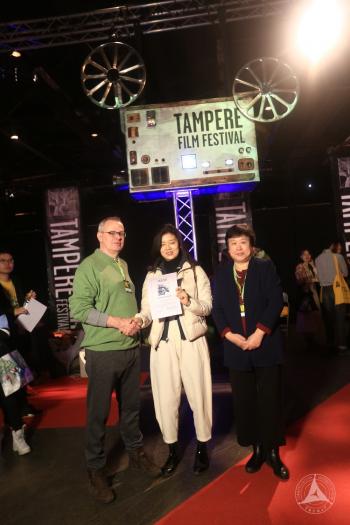“半夏的纪念”组委会共为本次坦佩雷国际短片节主竞赛单元推荐了超过二百部来自中国的青年影像作品,在颁奖典礼上, 2017 “半夏的纪念”年度作品《塬》获得最佳剧情片大奖,充分体现了国际影像节展对中国年轻创作者的认可。来自2014级广播电视学(国际新闻新闻方向)的邢天宇,作为发行方代表在颁奖典礼中向组委会表示了感谢,并阐述了世界杯直播在线观看新闻传播学部、“半夏的纪念”组委会推动中国青年影像“走出去”的美好愿望和实际行动。