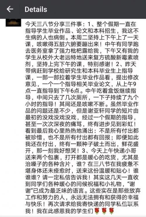 对于潘老师,无论多么长的告白,归根结底就是两个字——感恩。潘老师为我们付出的太多,而作为学生的我们,能为她做的总是十分有限,唯有谨记教诲,砥砺前行!