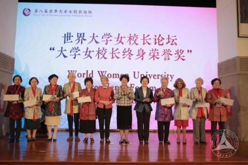 为表彰大学女校长对高等教育的贡献,世界大学女校长论坛专门设置了“大学女校长终身荣誉奖”。该奖项颁发给年龄在70岁以上、长期在高等教育领域工作、对论坛发展做出积极贡献的大学女校长。经世界大学女校长论坛第八届组委会审议,一致同意授予12位校长“大学女校长终身荣誉奖”。开幕式上,教育部原副部长、世界大学女校长论坛组委会顾问吴启迪宣布了该决定。陈至立、林文漪、伊琳娜·博科娃为获奖校长颁奖。