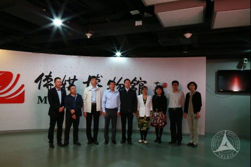 座谈会前,校党委副书记、纪委书记王达品陪同张锦主席一行参观了传媒博物馆。