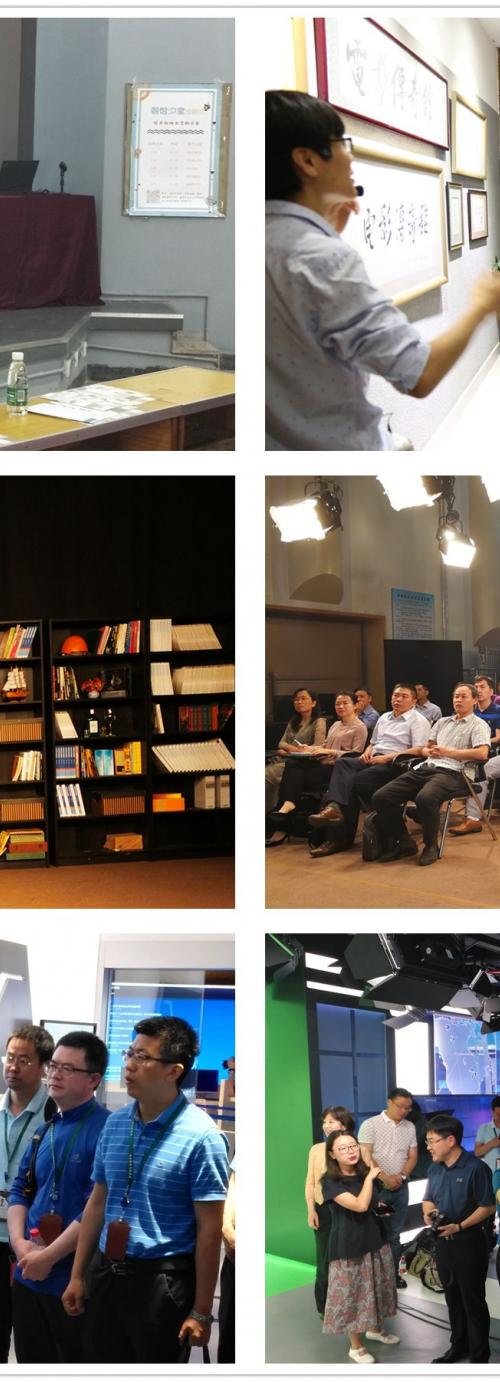 在随后的的现场授课环节,培训班学员分为三组,分别来到崔永元口述历史中心、媒介与公共事务研究院和中传电视台。在崔永元口述历史研究中心,中心副主任林卉以“大学服务于社会文化发展需求”为主题,就研究中心的建设、发展情况作了分享和介绍,并随后带领学员参观了口述历史研究中心的各个场馆;在继续教育学部演播室,媒介与公共事务研究院杨宇军院长就“全媒体时代的话语权”为题,从议题设置权、观点主导权、信息提供权、媒体运用权四个方面着重剖析了当前社会各领域热点,高度概括和总结了在全媒体时代下要以“善待媒体”、“善用媒体”、“善管媒体”为实践标准,从而全面掌握全媒体时代话语权;在电视台全媒体运行中心1400演播馆,中传电视台副台长刘杰峰以“全媒体行业发展融合型人才培养”为主题,详述了我校实验实践教学中心实践课程的课堂教学情况和媒体融合型人才的培养机制,并实地为学员们介绍了我校1400平米4K演播室系统的建设与运行。午餐过后,培训班全体学员参观了学校传媒博物馆。