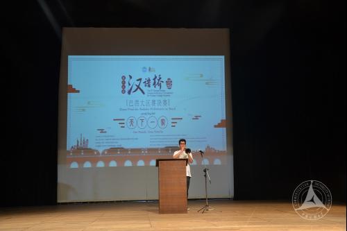 据悉,此次活动共吸引来自巴西各地10所孔子学院的17名选手参加,比赛采取淘汰制,笔试阅读,主题演讲,才艺展示每轮将淘汰5名选手,参赛选手以累计积分的形式角逐冠亚军。最终,来自圣保罗州立大学孔子学院的丹尼尔·巴博萨·卡瓦略·坎波斯(Daniel Barbosa Carvalho Campos)力压群雄,争得此次比赛的冠军。可以说,此次比赛,犹如一场严肃激烈的中国文化竞技,各家选手如八仙过海一般,各显神通,将平时所学,全部倾注于赛场之上,不光为嘉宾评委们奉上一场既紧张又有序的比赛,又为巴西的观众朋友们带来一场中巴文化的交流盛宴。