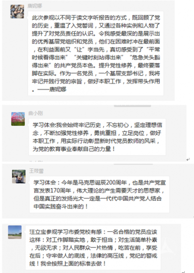 通过参观学习,大家深刻地认识到,只有坚持在全面从严治党中锤炼党性,才能永葆我们党的先进性和纯洁性。活动结束后,老师们纷纷分享了自己的学习心得,表示要不断在学习中锤炼党性,补充精神之钙,在工作中加强奉献,争做合格党员。本次实践教学环节将共组织4批次师生党支部书记进行参观学习,加强党性教育,提升培训效果。
