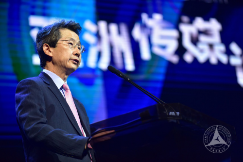 廖祥忠校长与朴仁国总长共同点火启动了代表前沿科技的航拍无人机,为期两天的第十三届亚洲传媒论坛正式拉开帷幕。此次论坛包含主会场的五场主旨研讨和两场分论坛研讨,围绕艺术和数字媒体、文化产业、创意阶层、全球化的亚洲、流行音乐和青年文化、数字娱乐与电子竞技等问题展开深入探讨。