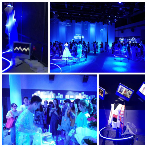当时尚秀开始,52赫兹的鲸的六位分身,身着蓝色荧光服饰,从小礼堂门口分批带领观众入场,穿越黑暗静谧的“海底隧道”,体验立体音景,最终走进52赫兹的鲸的世界。进入秀场内部后,52赫兹的鲸将引导观众参观场内的四个展区:制作体验区,化妆区,多媒体区,成衣区,使观众得以亲身体验展品,深入了解秀展灵感与设计师的心路历程。当展览结束,观众在引导下选择区域落座,时尚走秀开始。