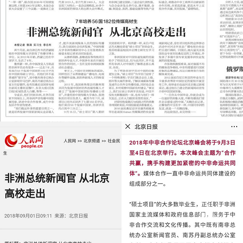 1.《北京日报》:《7年182位高材生,北京高校培养出非洲总统新闻官!》
