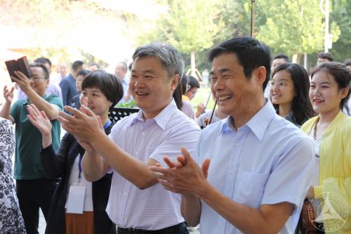 校领导兴致勃勃的观赏了学院特色迎新漫画、新同学带来的乐曲演奏等创新环节,充分肯定了各学院的新举措“既烘托了迎新的氛围,也展示了我校的艺术特色。”