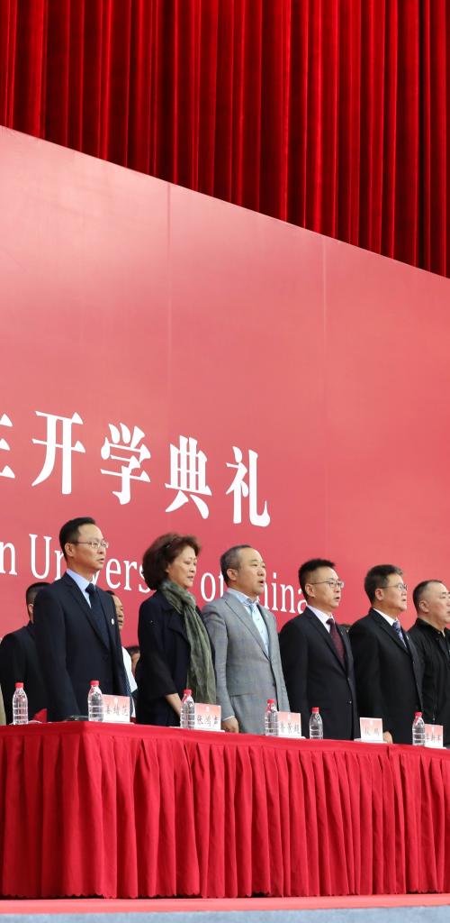 校党委书记陈文申,校长廖祥忠,校党委副书记王达品,副校长刘延平、刘守训、李新军、张树庭、段鹏,校长助理王志出席开学典礼。典礼由校党委副书记姜绪范主持。各学院领导、教师代表、校友代表在主席台就坐。
