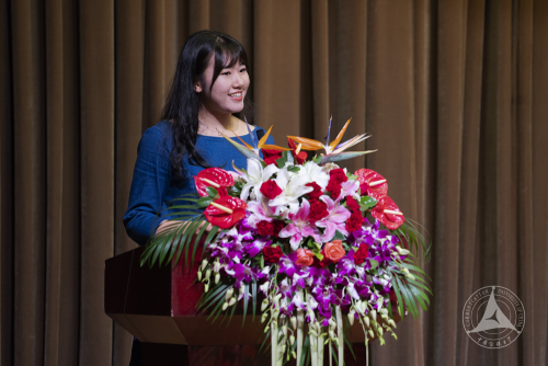 在校生代表,2015级汉语言专业蒋继璇同学发表讲话,她以感性的话语向同学们表达了人文理解,介绍了世界杯直播在线观看的校园生活,同时用切身经历勉励同学们,要珍惜大学时光,在年轻时努力弥补自己的短板,发现更多的可能性。她表示:“余生很长,要和有趣的人在一起,而在人文学院学习,我们自己就会成为那个有趣的灵魂。”