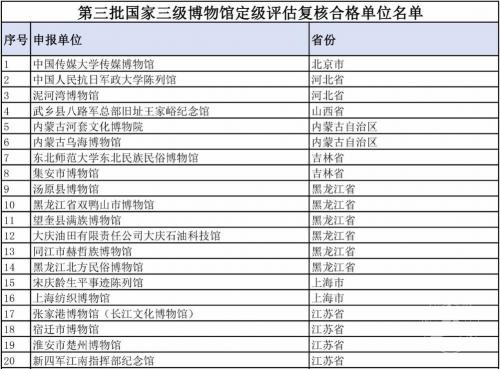 (通讯员 张遵璐)9月18日,中国博物馆协会发布的《关于公布了第三批国家二级、三级博物馆名单的通知》,我校传媒博物馆通过省级博物馆行业评定,全国博物馆评估委员会专家复核、国家文物局备案等层层严格评审,被正式评定为“国家三级博物馆”,这也是北京市高校博物馆中首个被列入“国家级”的高校博物馆。