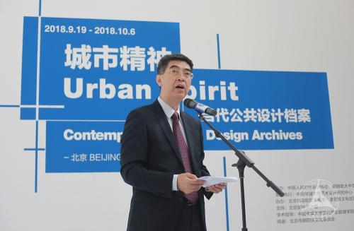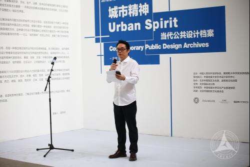 在展厅高悬的蓝色“城市精神”旗帜下,策展人吴学夫教授宣布“城市精神:当代公共设计档案展”正式开幕,并正式向观众开放。