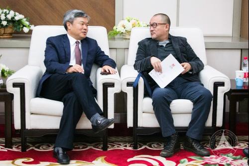 廖祥忠校长与本届影展评委会评审团主席王小帅导演亲切交谈