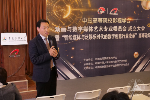 中国高等院校影视学会秘书长张国涛教授宣读了中国高等院校影视学会关于成立动画与数字媒体艺术专业委员会的决定。