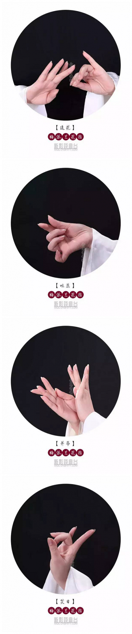 中国京剧艺术大师梅兰芳非常重视手势的意蕴表达,在向前人学习的基础上创新编排了53种旦角手势,因其形态似兰花造型,所以也被称为兰花指。梅兰芳精湛的舞台艺术的核心是“美”字当先,他的53式兰花指手势,延伸了旦角表演艺术的内涵,成为中国戏曲表演美学的宝贵财富。梅兰芳在1919年和1924年访日,1930年访美,1935年访苏等演出中,手势表演受到了国外戏剧评论家的高度关注和赞誉。