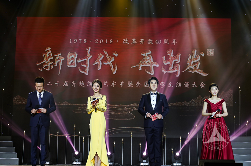(通讯员 方雅琪)11月2日,第20届齐越朗诵艺术节暨全国大学生朗诵大会颁奖展演在我校举行。为纪念改革开放40年,本届朗诵大会以“新时代,再出发”为主题,在校大学生、媒体一线校友和朗诵艺术家们同台共诵中华经典,同抒爱国情怀,用有声语言的独特魅力,铸就中华文化新辉煌。十届全国人大常委会副委员长、中国关工委主任顾秀莲,教育部关工委主任李卫红,教育部关工委常务副主任姚喜双,教育部思想政治工作司司长魏士强,教育部关工委副秘书长于虹,我校党委书记陈文申、校长廖祥忠、副书记姜绪范、副校长张树庭、副校长段鹏等出席展演并颁奖。