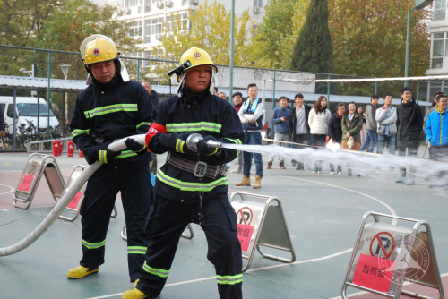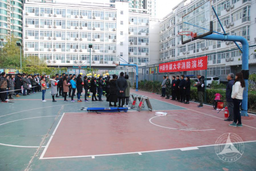 党委副书记姜绪范任总指挥,朝阳消防支队警官李虎成,保卫部(处)张绍华部长、王宝民副部长,后勤保障处党总支书记刘鹏楼,学生工作部(处)副部长魏峰、铁俊等到场指导。消防演练分共为两大模块。一是模拟公寓2号楼2210房间发生火灾场景,组织住宿学生疏散逃生及救援演练;二是全体住宿学生撤离到公寓楼外后,进行“干粉灭火器灭油火”实操演习。保卫部(处)消防科徐文彪老师讲解了灭火器材的使用方法并现场指导学生灭火实操演练。