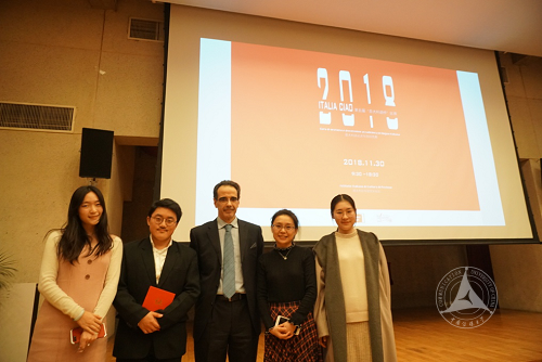 比赛结束后,意大利驻华参赞与我校意大利语专业师生进行了亲切交流,对雷笑东同学所取得的成绩表示祝贺,也表达了与我校及外国语言文化学院意大利语专业进一步交流合作的意愿。