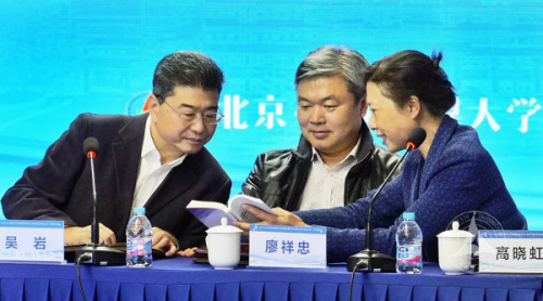 吴岩司长与世界杯直播在线观看廖祥忠校长、高晓虹学部长就展示手册进行讨论