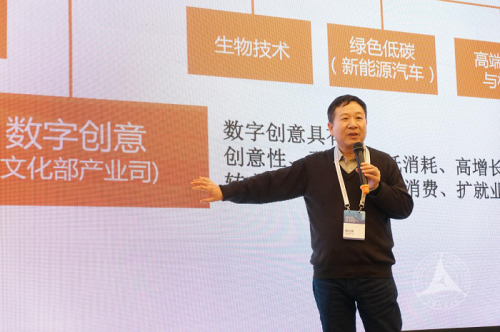 黄心渊教授重点提及了数字创意于2016年被纳入国家战略性新兴产业发展规划的相关事项。在该规划中,数字创意与新一代信息技术、生物技术、新能源汽车、高端装备与材料相并列,数字创意产业由此成为五大新支柱之一。教指委此前全程参与了该规划起草与研讨,在其中起到了重要作用。