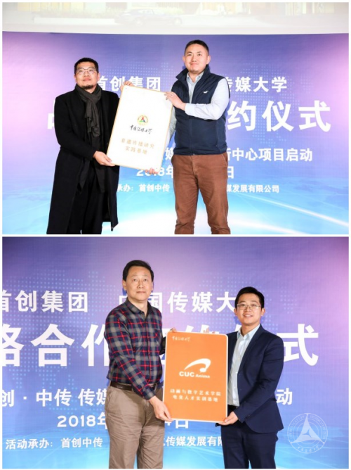 同时,我校文化产业管理学院与首创非遗创新发展平台合作共建“非遗传播研究实践基地”,动画与数字艺术学院与首创二通厂数字创意产业园项目合作共建“电竞人才实训基地”也正式揭牌。