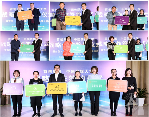 启动仪式上 ,我校科学研究处、动画与数字艺术学院、广告学院、戏剧影视学院、音乐与录音艺术学院、计算机与网络空间安全学院分别与中心进行了合作共建授牌。
