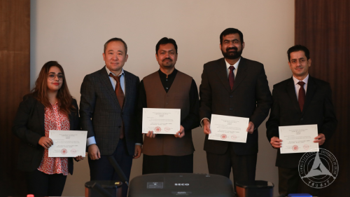 随后,段鹏副校长、胡芳副主任和曾祥敏书记分别为四位巴基斯坦记者颁发了结业证书、纪念图册和纪念品。