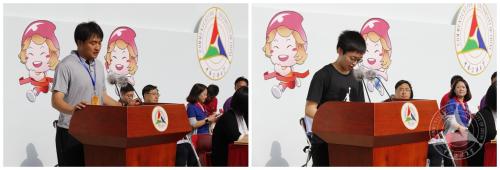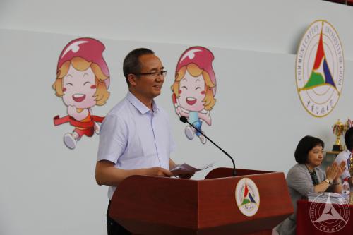 体育部王鸣捷老师与2017级传播学专业的马雨薇同学分别作为裁判员代表和运动员代表宣誓。