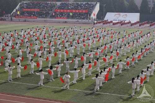 开幕表演精彩纷呈,来自我校18个学院的400位学生组成的太极扇表演方队将青春气息与传统文化结合在太极扇的开合之中,这个表演方队是首次由体育部与学工部联合各学院共同组织管理的学生团队,是体育教学与课外群体活动形式的新探索。300位教职工的广播体操表演展现了我校教师的青春风采,学校啦啦队的压轴表演将现场气氛推向高潮,恣意绽放的年轻活力成为绿茵场上跳动的音符,他们用热爱和自信展现了青春的美丽。