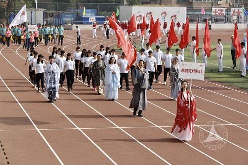 开幕式前,国旗护卫队、彩花方队、红旗方队以及裁判员方队率先亮相,21支学生方队和28支教师方队迈着整齐的步伐依次从主席台前走过, 展现了新时代大学师生的饱满精神与昂扬斗志。动画与数字艺术学院分工会五位教师身穿代表中国传统文化的汉服亮相,向祖国七十周年献礼。新闻学院分工会方队在年过八旬的曹璐教授等退休教师带领下登场,作为学校六十五年发展历程的亲历者,他们的出现使这场青春盛会焕发岁月光辉。