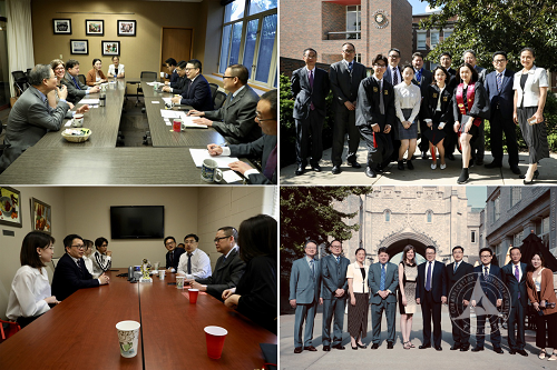 5月17日,代表团抵达哥伦比亚市的第二天一早,与密苏里大学负责国际事务的副校长玛丽·斯蒂格梅尔(Mary Stegmaier)、密苏里大学新闻学院院长戴维·柯皮尔斯(David Kurpius)、副院长弗里兹·克罗普(Fritz Cropp)、国际交流中心中国项目主任章于炎进行了会谈。