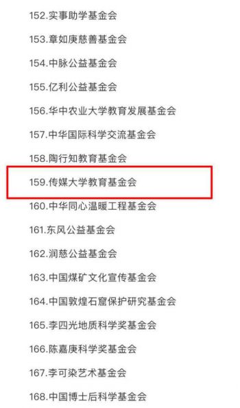 (通讯员 宫月晴)日前,财政部、国家税务总局、民政部联合发布《关于2017年度第二批和2018年度第一批公益性社会团体捐赠税前扣除资格名单的公告》(财政部 税务总局 民政部公告2019年第69号),传媒大学教育基金会获得2018年度第一批公益性社会团体捐赠税前扣除资格。