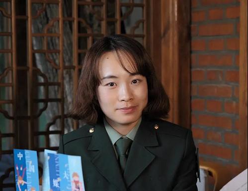 她,身着中国人民解放军的墨绿色常服,阔步走来——自信、阳光、干练,英姿飒爽。