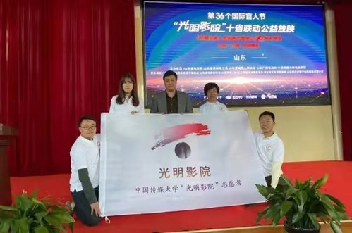 学校充分发挥视听传播专业教育方面的优势,组织师生团队制作无障碍版本电影,丰富视障人士的文化生活,满足我国1700多万视障人士的精神文化需求,为视障人群构筑“文化盲道”,把党和国家发展残疾人事业、加强残疾康复服务的要求落到实处。自2017年底启动“光明影院”项目以来,500多名师生志愿者每年制作104部作品,无障碍电影覆盖31个省(区、市),点对点支援国务院划定的14个集中连片特困地区,助力文化扶贫。2021年还开展“光明影院进特校”公益活动,为全国2244所特殊教育学校的32万残障学生赠送40部无障碍电影观影硬盘,共同庆祝党的百年华诞。