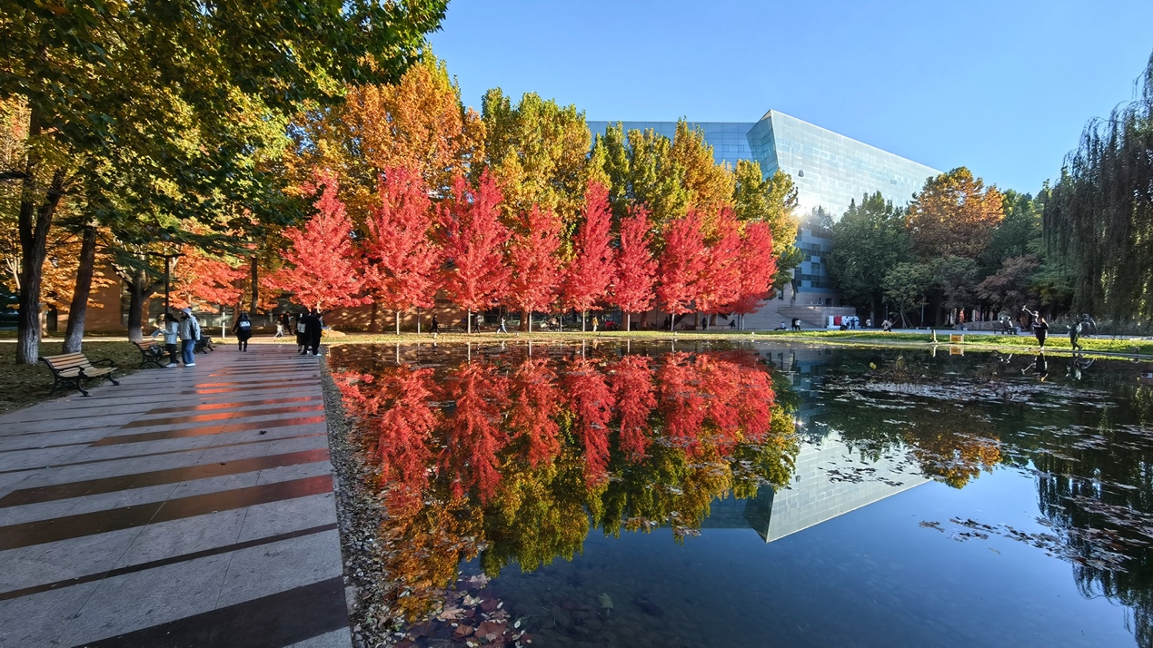 (配图 申皓文)霜天兮万木,红叶兮欲燃。湛湛湖水兮上有枫,粼粼波光兮倒影悬。斟绿醑兮泛沧浪,送归鸿兮酽夕岚。振衣兮岗千仞,霁雨兮艳阳天。恍如兮身在画境,唤醒兮目映琼田。最爱广院盛景兮,堪惊吾大美中传。却道秋风起兮,好一派天下独好之校园。