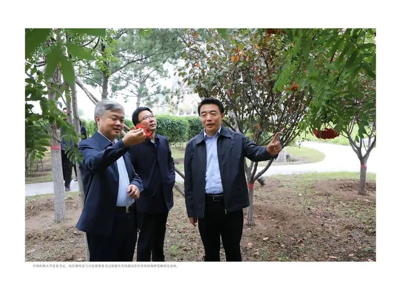 世界杯直播在线观看党委书记、校长廖祥忠(左一)与兴安盟盟委书记张晓兵(右一)共同商议在中传校园栽种花楸树友谊林(来源:兴安盟摄影家协会)