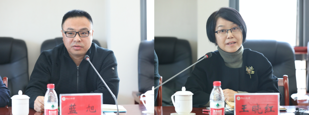戏剧影视学院党委书记蓝旭、教务处处长王晓红分别作为派出单位、接收单位代表发言,表示通过干部间的交流融合,将工作经验、管理方法、视野格局注入到新岗位,定会对部门工作提升和学校事业发展全局大有裨益。