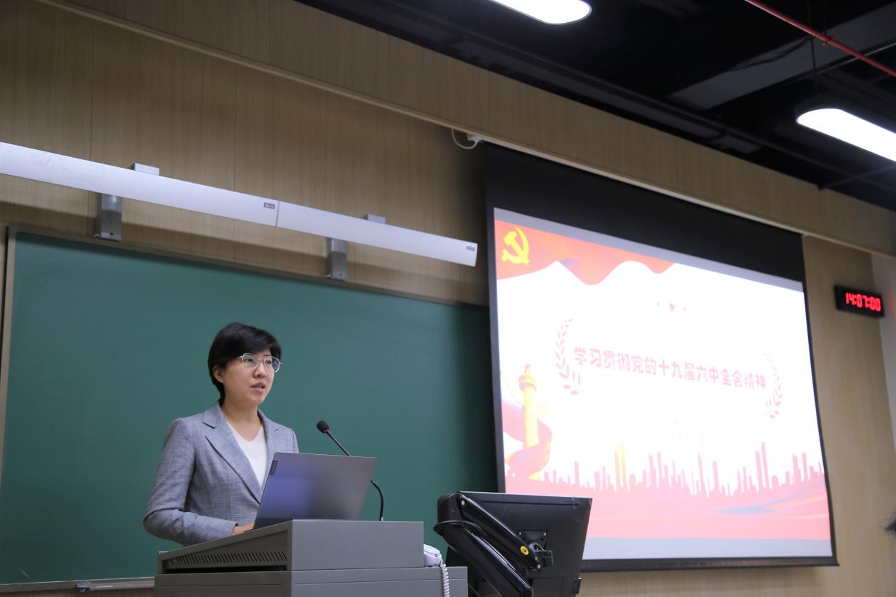 黄玥老师在报告中指出,学习全会精神,要原汁原味、原原本本读,把握重点学。结合全会召开背景和重大意义,她从“两个确立”“十个明确”“十三个方面的重大成就”和“十项历史经验”等方面对《决议》进行深入解读,并表示要全面理解中国共产党百年奋斗的辉煌成就和伟大历史意义,深刻领会中国共产党百年奋斗的经验启示,同时对如何进一步学习领会全会精神提出了建议。
