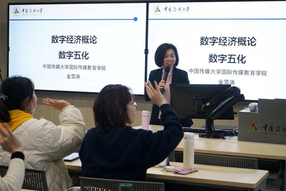 此次《数字经济概论》异地同步课堂共设置两讲,主题为《数字经济如何改变传统经济学理论》《数字经济场景应用》,分别由我校经济与管理学院传媒经济系系主任程静薇副教授与国际传媒教育学院院长金雪涛教授主讲。