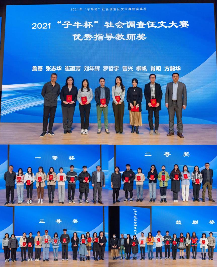(通讯员 李睿 王佳辉)12月22日晚,2021年“子牛杯”社会调查征文大赛颁奖典礼暨2022年“子牛杯”启动仪式于中传礼堂隆重举行。新闻学院领导班子成员、评委及指导教师代表、获奖学生代表、2021级本科及研究生等400余人参加了本次活动。颁奖典礼由新闻学院党委书记陈作平教授主持。