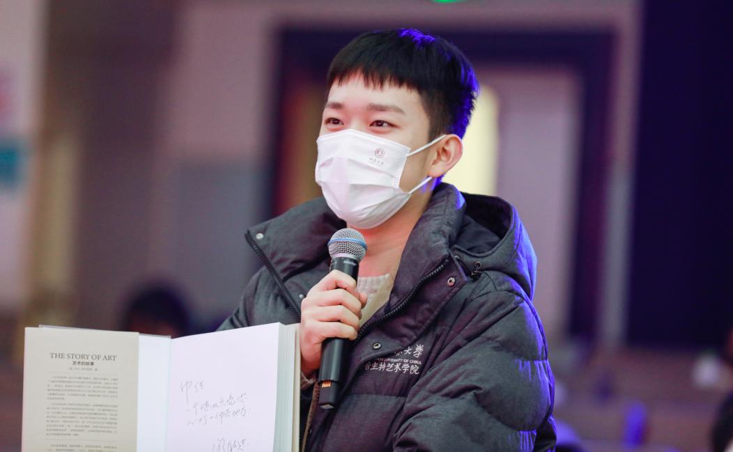 抽取到廖祥忠书记赠书的播音主持艺术学院周泽昊同学表示:“廖书记曾提到‘每一个不曾阅读的日子,都是对大学的辜负’。今天有幸抽取到廖书记赠书,激励自己在未来好好读书,提升知识素养,丰富文化内涵,不负时代,不负韶华。”