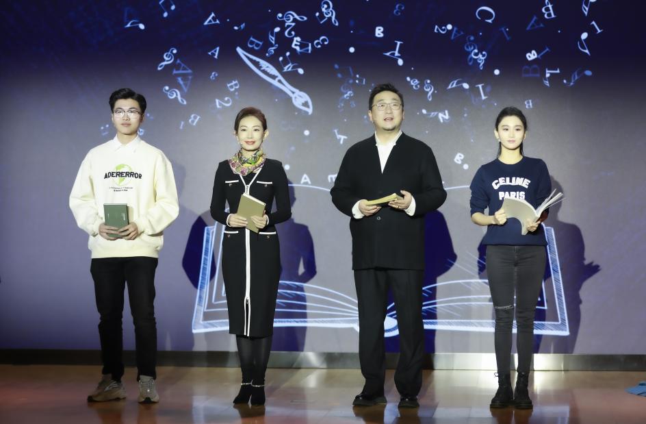 戏剧影视学院教师孙德元、播音主持艺术学院教师刘鹏、戏剧影视学院的孙佳同学以及“得到读书奖学金”获奖者、播音主持艺术学院的杨兴雨同学带来美文诵读《送给青春的那本书》,分享他们在青春记忆中最难以忘怀的一本书。
