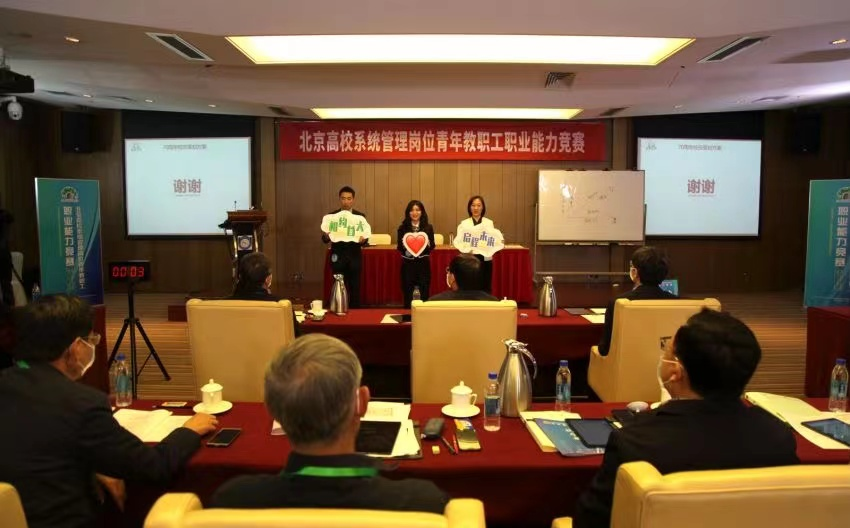 (通讯员 杨浦) 12月16日,由中共北京市教工委、北京市教委、北京教育工会主办的北京高校系统首届管理岗位青年教职工职业能力竞赛(“青管赛”)在中国地质大学(北京)落下帷幕。我校党政办公室张雯菲、校团委周子颜、戏剧影视学院许天缘三位青年管理教师组成代表队参赛并荣获A组三等奖。
