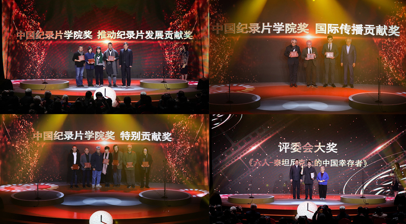 本届学院奖设置了特别奖环节,授予清华大学清影工作室、大象点映、一亩三分地公益放映“推动纪录片发展贡献奖”;授予【俄】瓦莱里·鲁津、【英】柯文思和【印】魏克然·钱纳“国际传播贡献奖”;授予夏蒙、郭东升、李汝建、徐蓓、许继锋、李东珅等六位中国纪录片界中坚力量“特别贡献奖”,以此致敬他们在推动中国纪录片发展、促进国际传播与人文交流等方面做出的突出贡献。