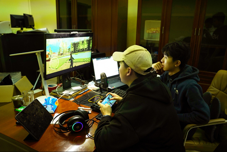 实验室成员调试虚拟中传校园客户端三维效果