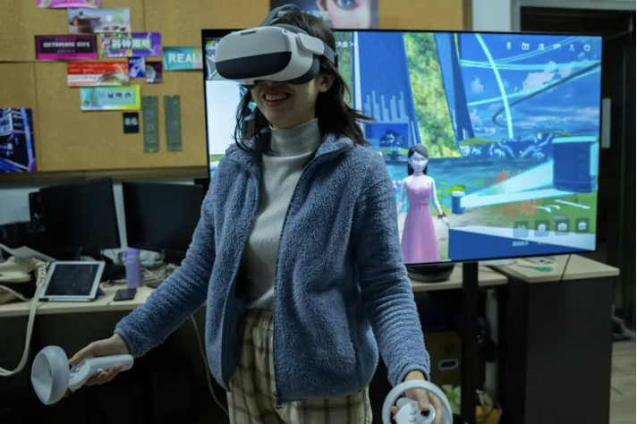 用户可以在VR设备中身临其境地体验虚拟中传校园